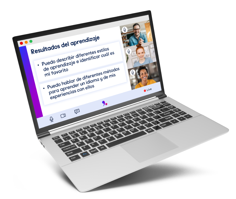 Aprende a hablar con soltura en nuestras clases online en vivo disponibles las 24 horas del día, con planes de estudio estructurados y profesores expertos.