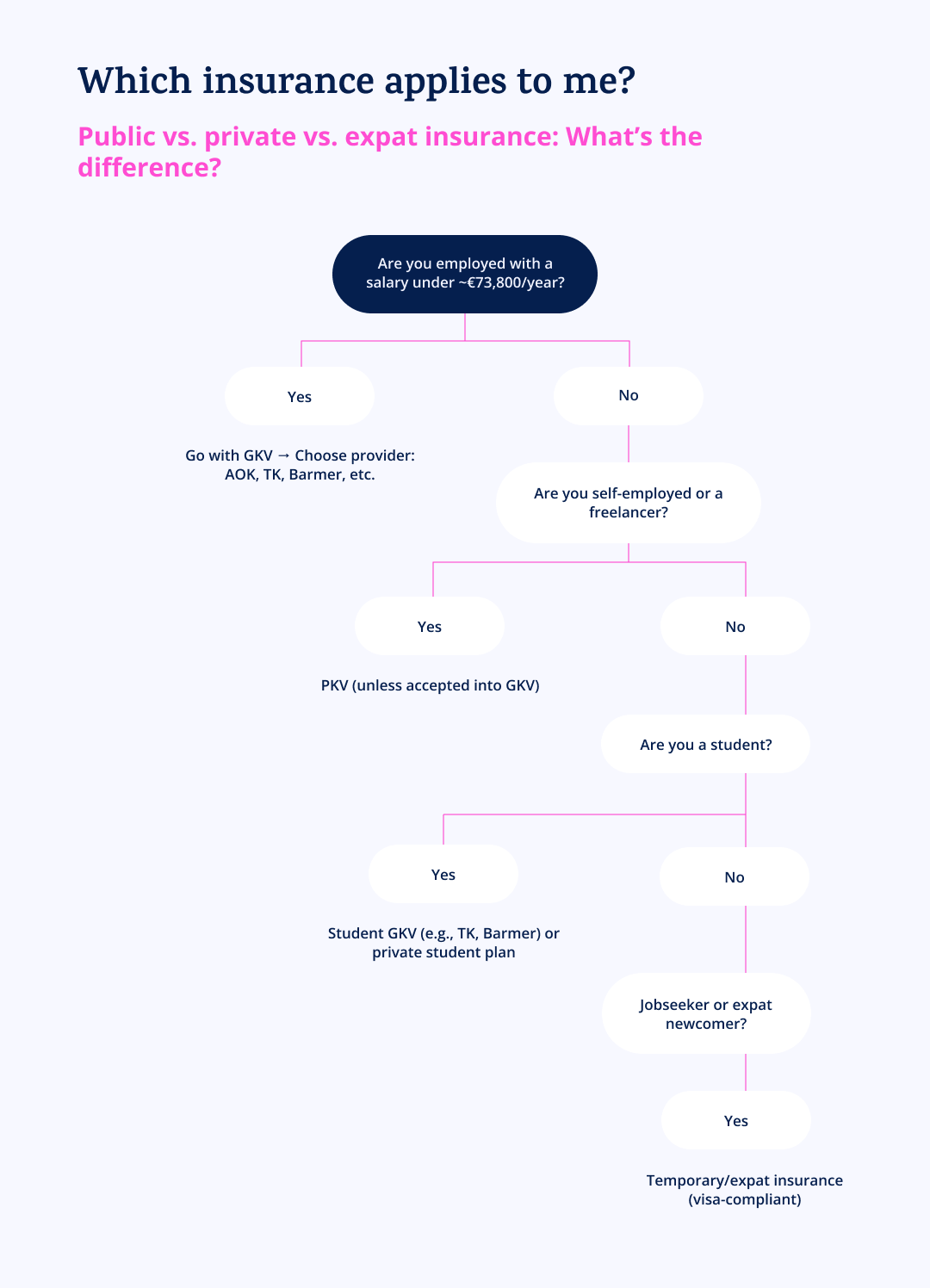 - Freelancers: You apply yourself. Joining GKV can feel like applying to Harvard or Hogwarts — not everyone gets in. Many end up in PKV (private insurance) instead.