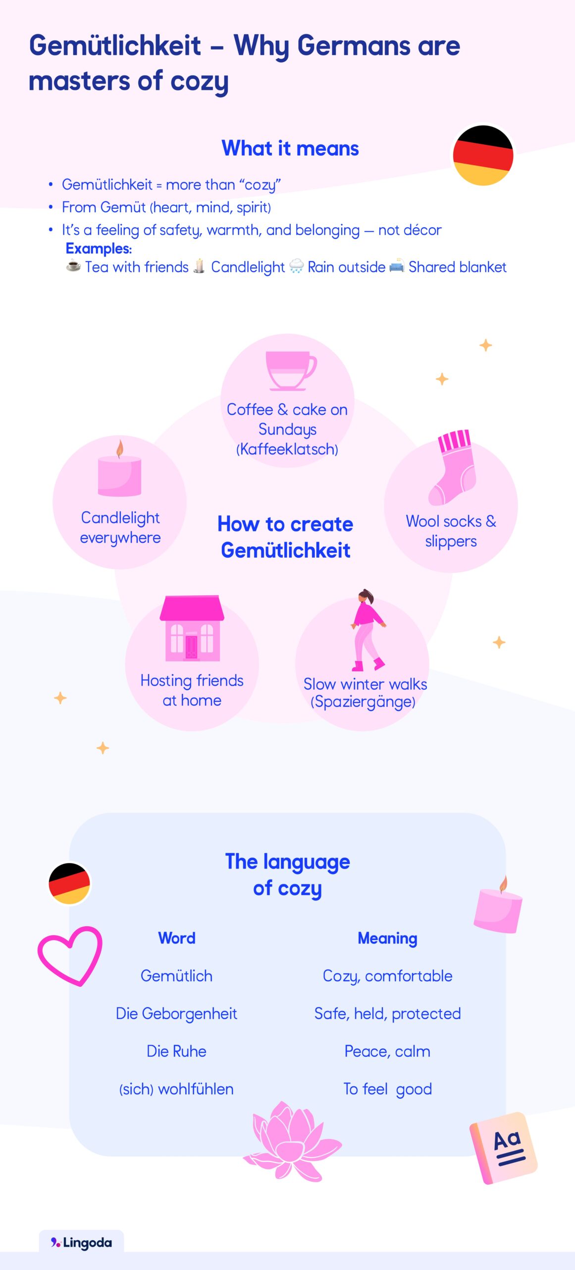 Each adds a layer to the warmth that fills German life. For expats, learning these words goes beyond simple vocabulary and into the details: the soft voices, the slow moments and the charming way in which comfort is built into the rhythm of everyday life.