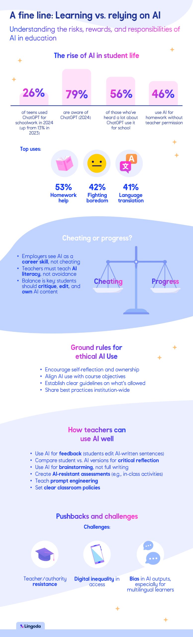 AI is reshaping classrooms, particularly in language learning. While excessive dependence can undermine authentic learning, thoughtful integration allows students to personalize their practice, receive instant feedback, and develop new skills.