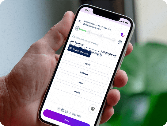 Learning doesn’t stop with our classes. Inside our study area, you’ll find smart and personalised practice tools, such as flashcards or Lingobites. This way you can practise what you’re learning at any time.