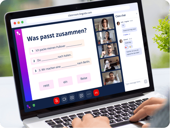 Choosing online language lessons with Lingoda is the most effective and flexible way to mastering a new language. As a leading platform for language learning online, Lingoda offers a selection of high-quality language courses tailored for your individual learning needs. Our approach to online language learning is centered around live, interactive classes, ensuring a rich and engaging educational experience. By choosing to learn a language with us, you benefit from personalised attention from experienced teachers, comprehensive course materials, and the freedom to study at your own pace, making it an ideal choice for those seeking an all-encompassing and adaptable learning environment.