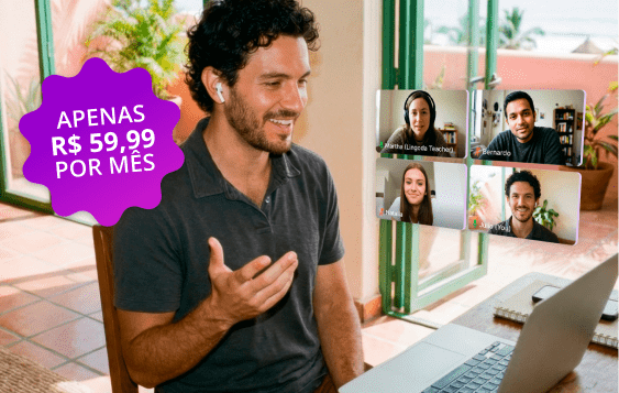 Se você está procurando uma maneira fácil e flexível de criar sua rotina de aprendizado de inglês, este é um ótimo ponto de partida. Você terá acesso a exercícios no seu próprio ritmo, uma aula online ao vivo mensal com um professor especialista e ferramentas com tecnologia de IA – tudo pelo nosso melhor preço.