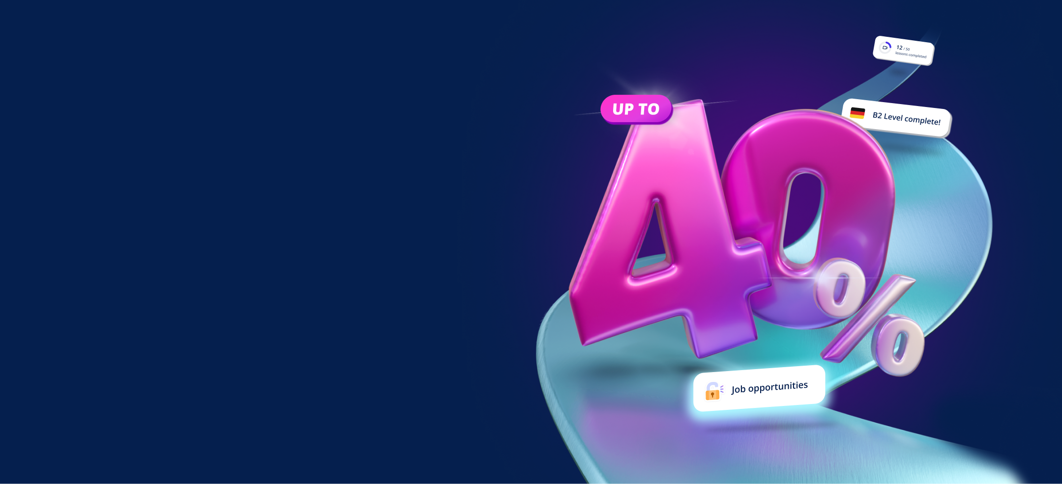 Start your language journey with our big Black Friday sale on Lingoda Flex! Available for purchase made between 13 November and 9 December (until 10:00 a.m. CEST), save 30% on the M plan, 30% on the L plan, and 40% on the XL plan. Our S plan is excluded from this offer. The discount applies only to the first month and is available to new students who have never had an active Lingoda subscription (excluding the free trial). Please note that this offer cannot be combined with other promotions.