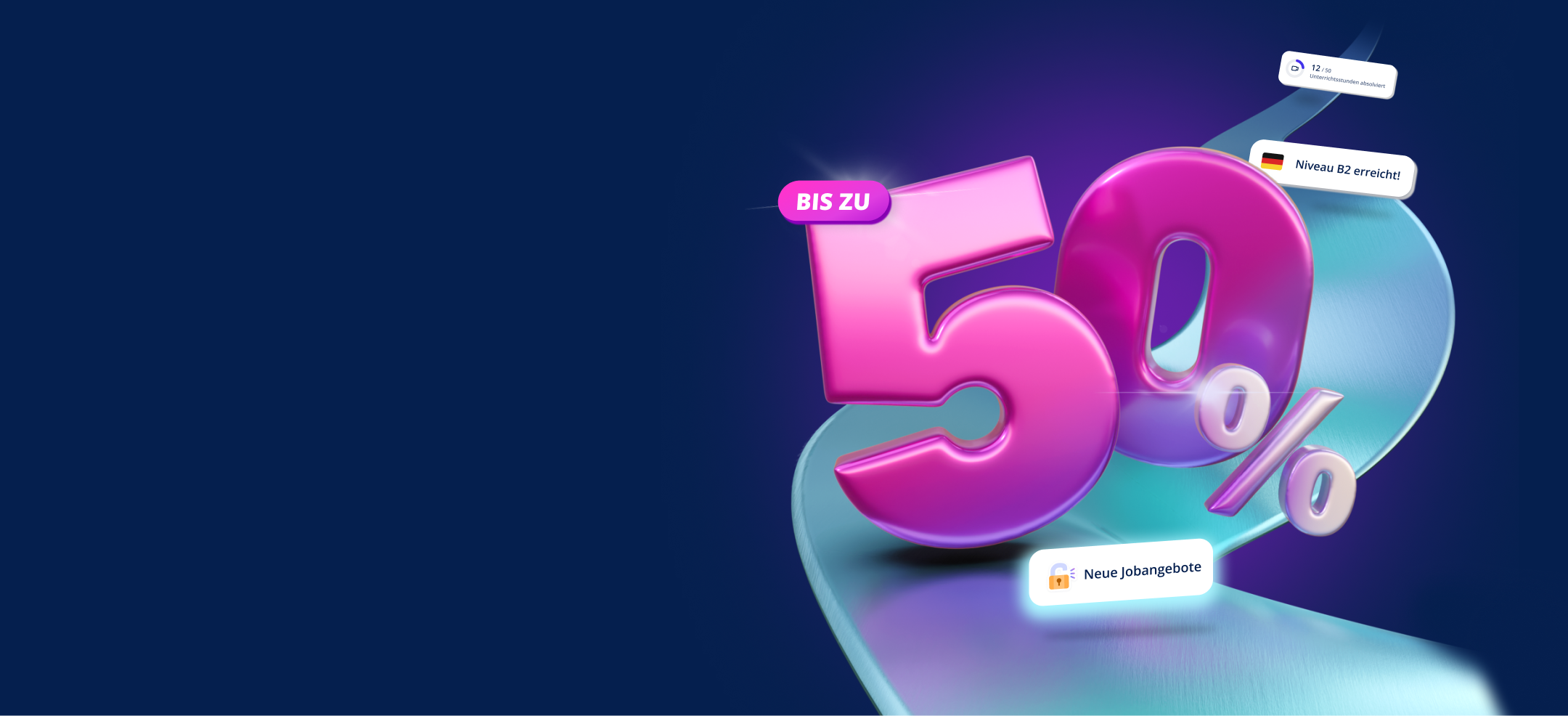 Starte dein sprachliches Abenteuer mit unserem Black-Friday-Angebot für Lingoda Flex. Verfügbar für Abos, die zwischen dem 13. November und 9. Dezember (bis 10:00 Uhr MEZ) abgeschlossen werden. Spare 30 % auf das Abonnement M, 30 % auf L und 40 % auf XL. Unser Abonnement S ist aus dem Angebot ausgeschlossen. Der Rabatt gilt nur für den ersten Monat und nur für neue Teilnehmende, die zuvor noch kein aktives Lingoda-Abo hatten (mit Ausnahme des kostenlosen Probezeitraums). Bitte beachte, dass das Angebot nicht mit anderen Aktionen kombiniert werden kann.