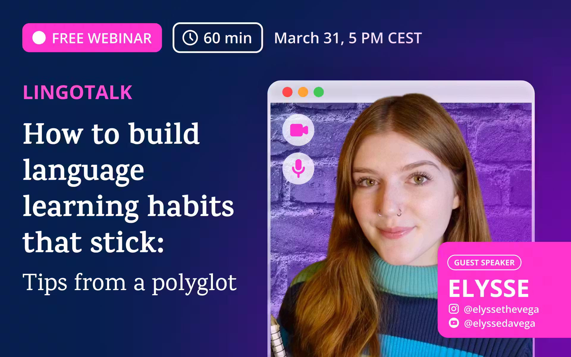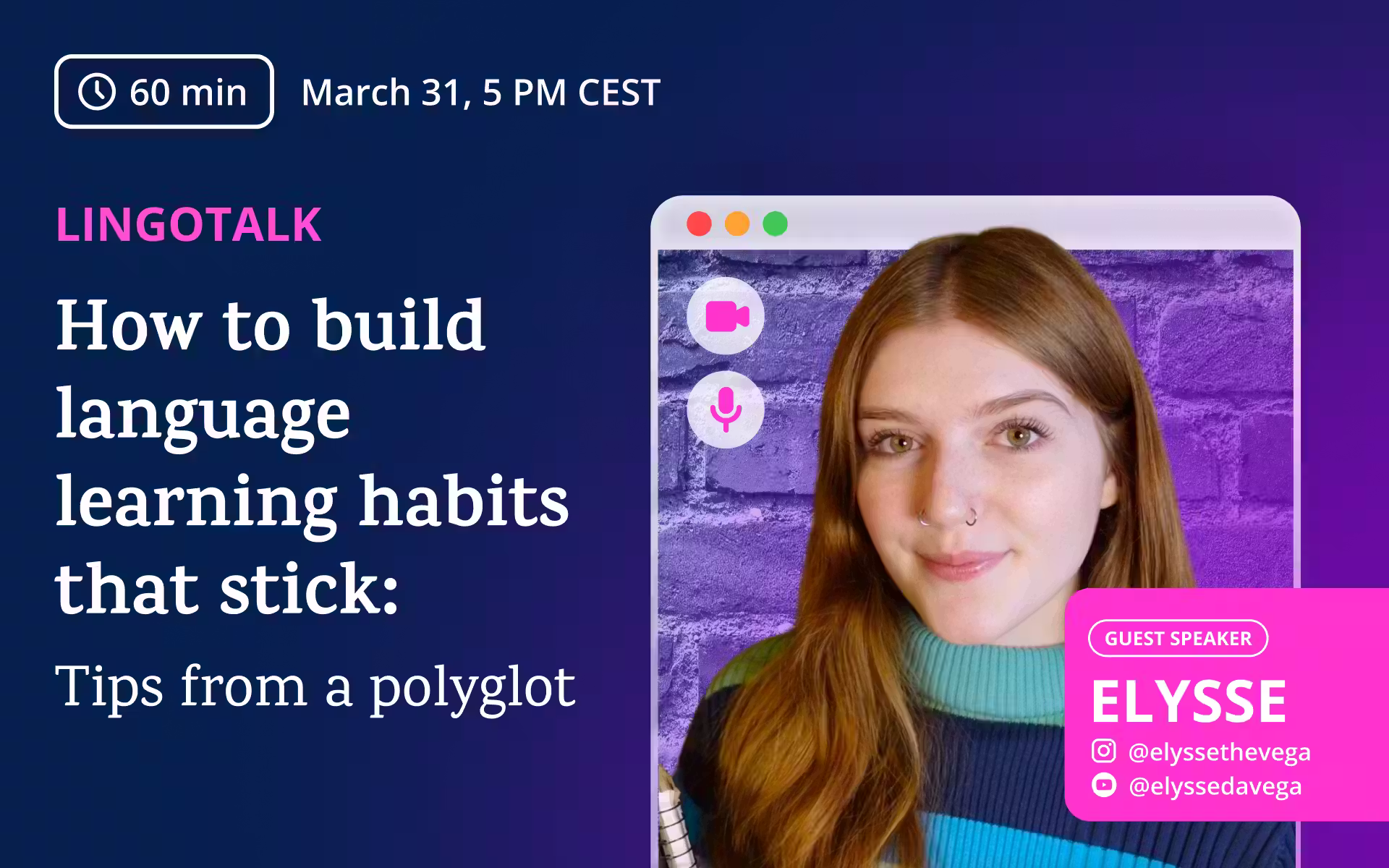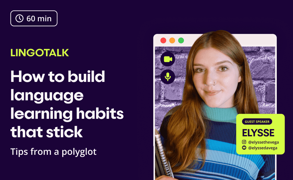 Building a sustainable language learning routine isn’t just about the right textbooks: it’s about creating habits that actually stick. In this webinar, host Valentina (Lingoda Content Manager) is joined by language creator Elysse DaVega (@elyssethevega) to explore how to move past the "all-or-nothing" trap and make progress every day. Drawing on Elysse’s decade of experience learning seven languages, you’ll learn how to set actionable goals, debunk common study myths, and shift your mindset to prioritize consistency over intensity. You’ll leave with a realistic roadmap to integrate your target language into your daily life organically.