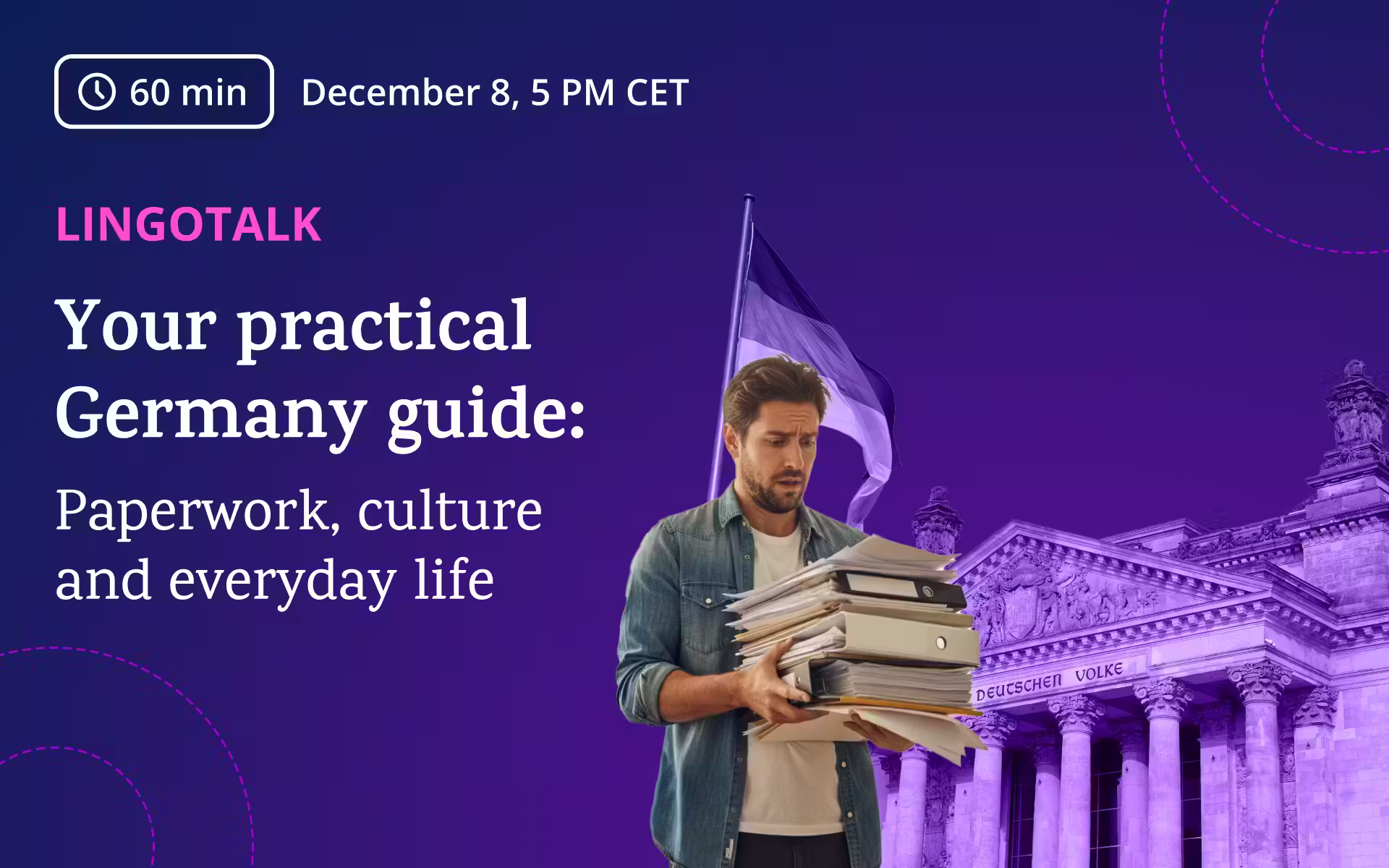 Moving to Germany isn’t just about paperwork or learning a few phrases—it’s about understanding how life here really works. In this interactive 60-minute webinar, content manager Valentina, German teacher Paul, and expat guest Ciara will walk you through everything you need to know to feel at home. You’ll learn how to navigate German bureaucracy with confidence, decode the country’s unique cultural habits, and discover how to build real connections and routines that make daily life smoother. Through expert insights, personal stories, and practical tips, you’ll leave ready to handle the essentials and enjoy your new chapter in Germany.
