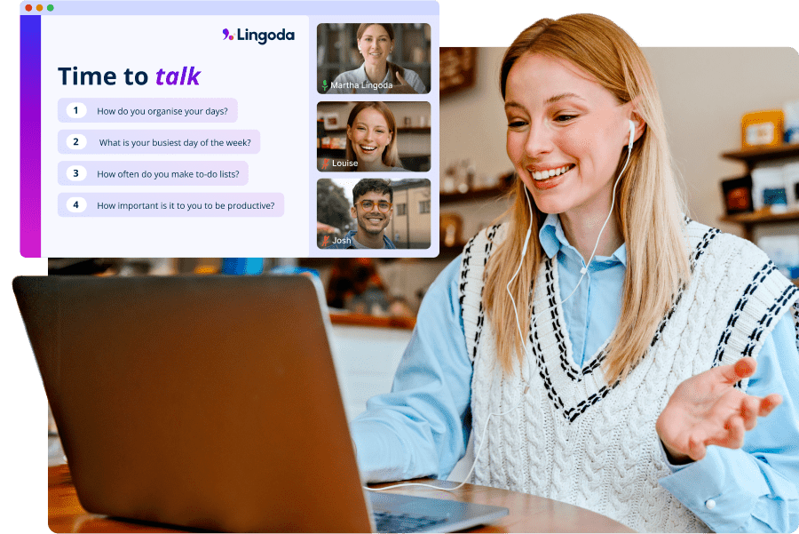 With Lingoda, you decide the pace and level at which you want to learn. Choose from 3 different types of courses, and improve your skills today!
