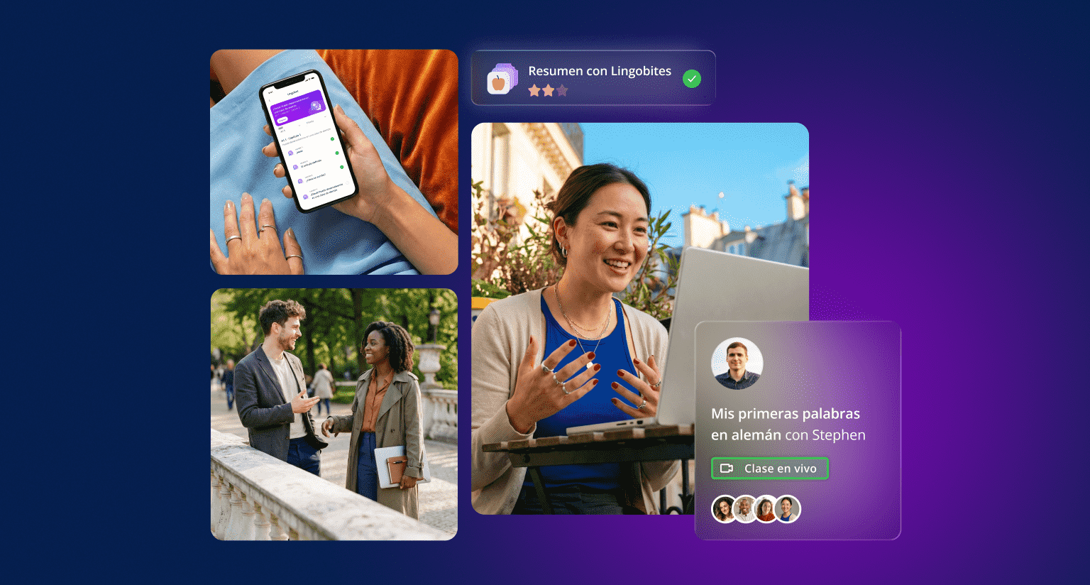 No, no somos una app de idiomas. Somos una escuela de idiomas online. Y, como cualquier escuela, ofrecemos clases en vivo con profesores nativos cualificados. En Lingoda creemos que nada puede reemplazar la interacción en vivo y los comentarios personalizados de una persona real.