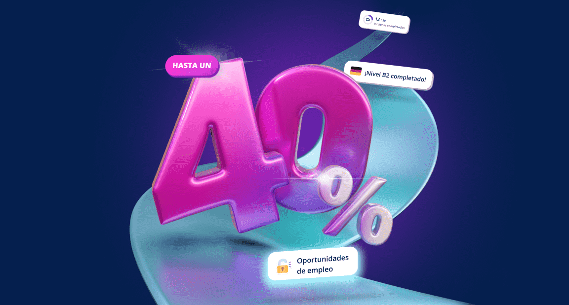 ¡Empieza a aprender idiomas con nuestra gran oferta de Black Friday para Lingoda Flex! Disponible para compras realizadas entre el 13 de noviembre y el 9 de diciembre (hasta las 10:00 a. m. CEST): ahorra un 30 % en el plan M, un 30 % en el plan L y un 40 % en el plan XL. Nuestro plan S no está incluido en esta oferta. El descuento solo se aplica al primer mes y es válido para nuevos estudiantes que nunca hayan tenido una suscripción activa en Lingoda (excepto la prueba gratuita). Ten en cuenta que esta oferta no se puede combinar con otras promociones.