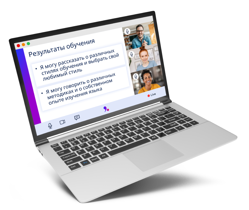 Погружение в языковую среду через обучение в мини-группах до 5 человек.
