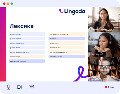 Lingoda поможет не сбиться на пути к целям. В специальной учебной зоне есть всё для эффективной практики языка! Ты сможешь готовиться к урокам, повторять материалы, проходить квизы и выполнять упражения.