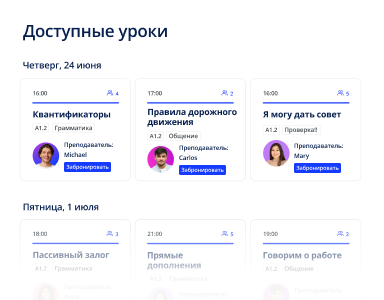 Мы стремимся сделать обучение в Lingoda доступным 24 часа в сутки, 7 дней в неделю. В этом нам помогают преподаватели-носители языка из разных уголков планеты. Чтобы подобрать максимально удобное расписание уроков, мы рекомендуем бронировать их за 7 дней. Также мы обновили политику отмены уроков, и теперь ты можешь отменить урок за 3 дня до его начала и вернуть учебный пункт. Предложение действительно только для ежемесячных учебных планов.